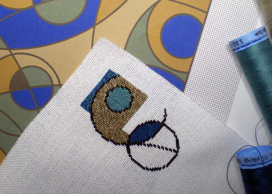 I am sub-optimally charting the design in Illustrator as I stitch. Actually, I’m doing a fine, if tedious, job of charting, it’s just that Illustrator is not really optimized for this purpose. It was adequate for the Modern Cross Stitch Bodoni charts, but those were the letterforms only, with no backgrounds, on 14 count canvas.