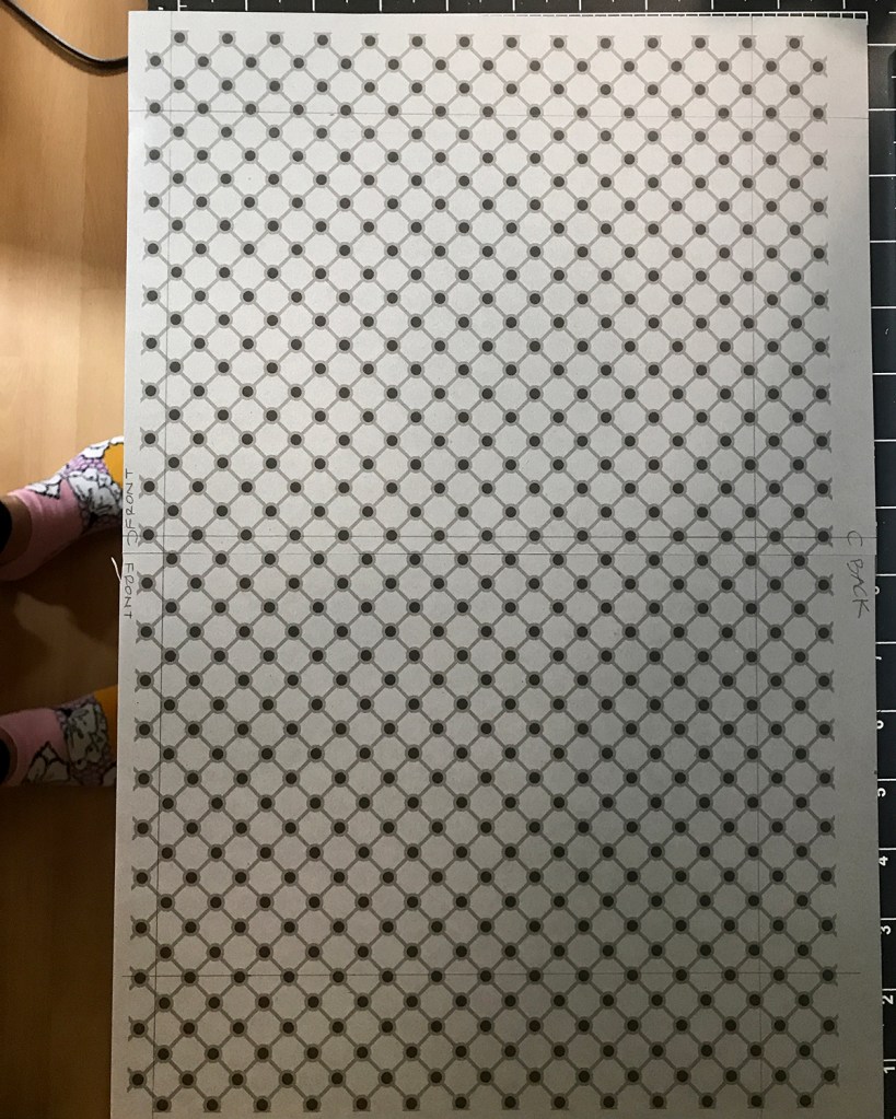 On multiple sheets of card stock a few shades lighter than the grout color, I printed out and taped together the pattern base.