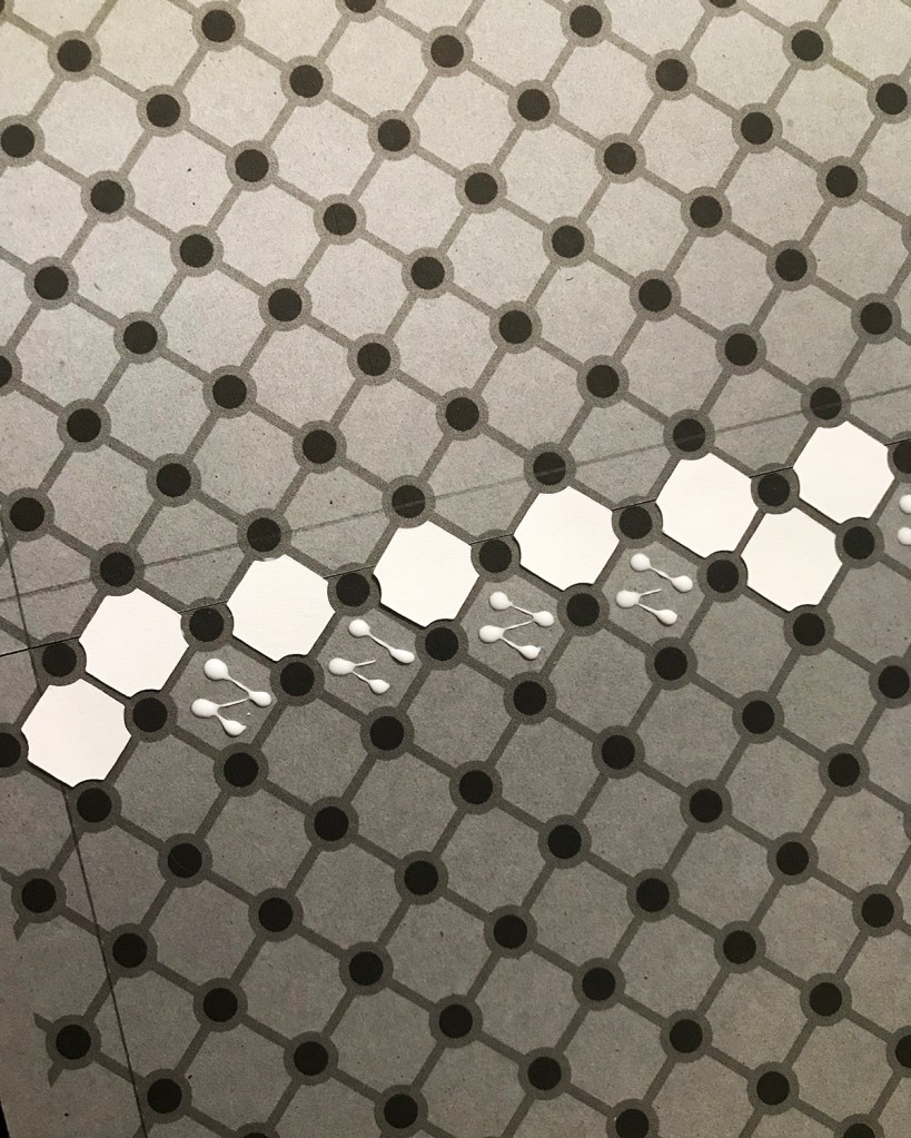 Both patterns are Beautifully complex and your methods and finished floors Sooooo Precise — I LOVE the way in which you have made the first set look like the universe underfoot and I love the somewhat vintage look of the white with dots pattern: I’m in AWE!