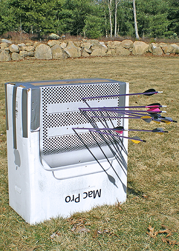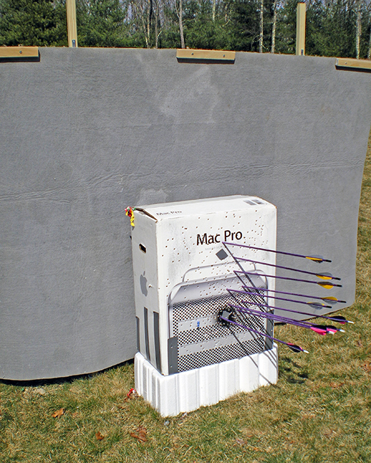 It is mildly amusing for two designers to shoot arrows at a Mac Pro box. I still need to make some bullseye designs, but we were so keen on practicing in our own backyard. I already know what will be on the first one: a deer tick.