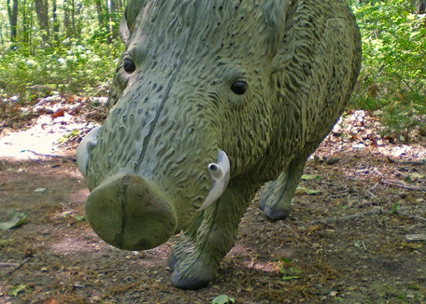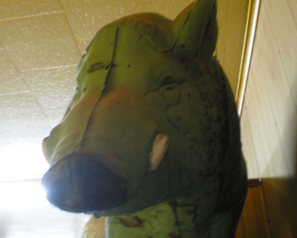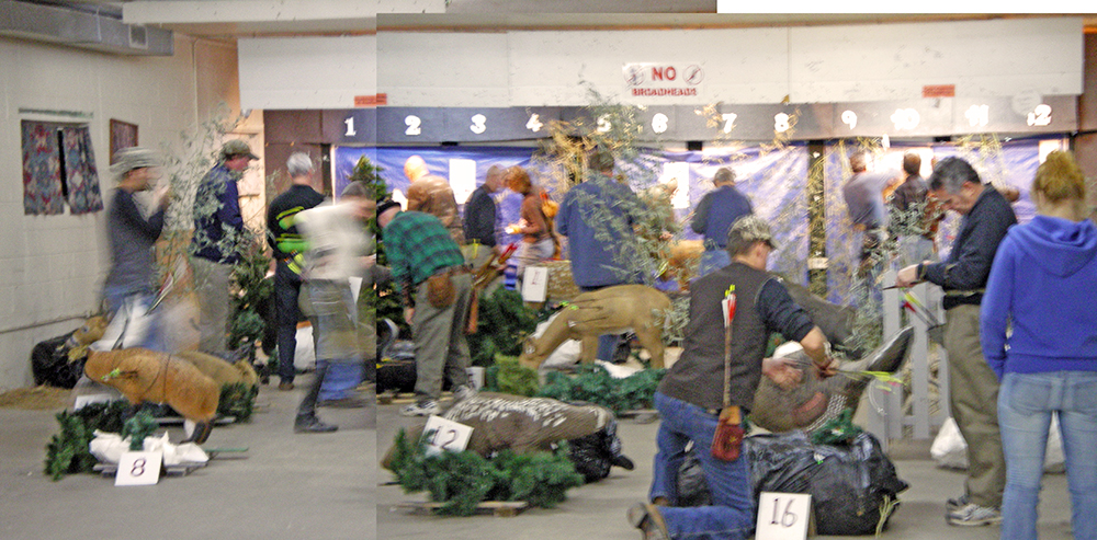 Totally conflicted here, being an animal lover, as in alive and furry and wild and free, but also an animal flesh eater, as in venison and wild boar are two of the most delicious things I have ever tasted. 3D targets, in archery, are a means to an end — the skillful dispatching of an edible animal to a cooking pot or the elimination of a noxious competitor for your garden. But also, 3D targets are made of molded, painted foam with replaceable “vital” areas, and are just surreal to look at, on a par with slightly sinister manikins at amusement park exhibits. 3D targets are sad and icky, but that’s not really the point. Archers are shooting at what they represent, not what they actually are. I’m trying not to over-think this, but it was, like, the first time I’ve ever seen a room full of them — with parts of fake Christmas trees set up as shrubbery — and it made an impression.