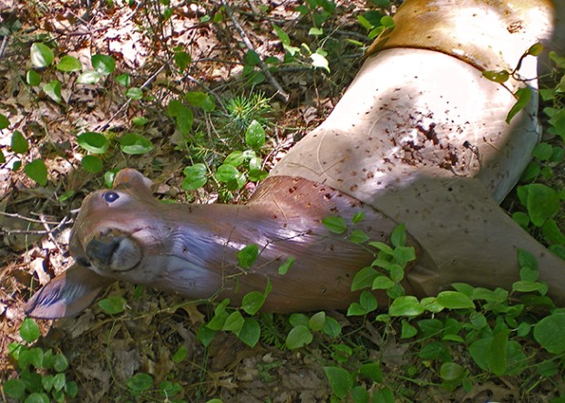 This black panther was menacing a duck decoy some wag had set out. (From the predator series of Rinehart targets, which includes a baboon.)