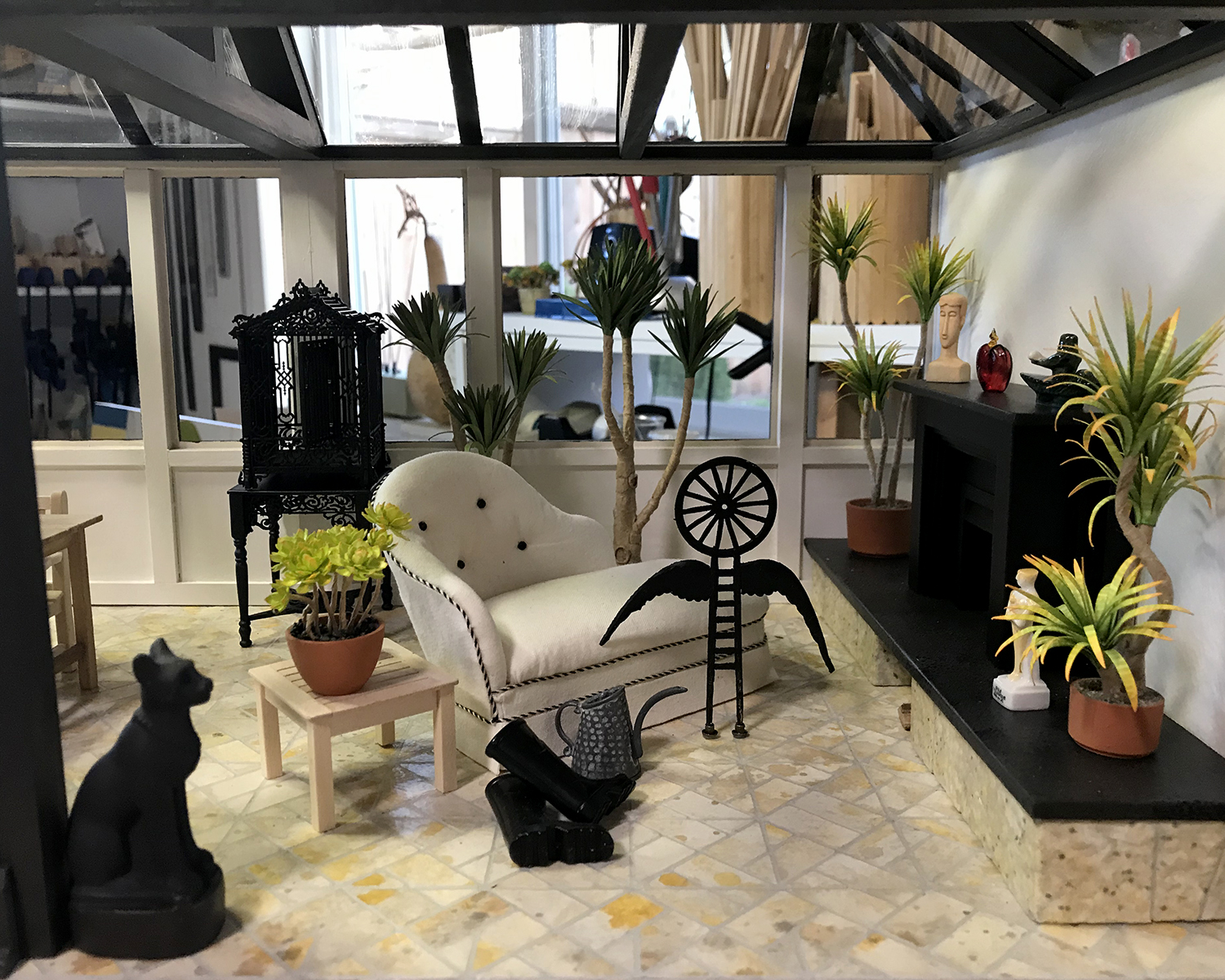 Here’s a glimpse of the under-pier, under-stair Sea House Conservatory setting. Barnacles by Keli, air-dry clay boulders, and flotsam from the natural and manufactured worlds.