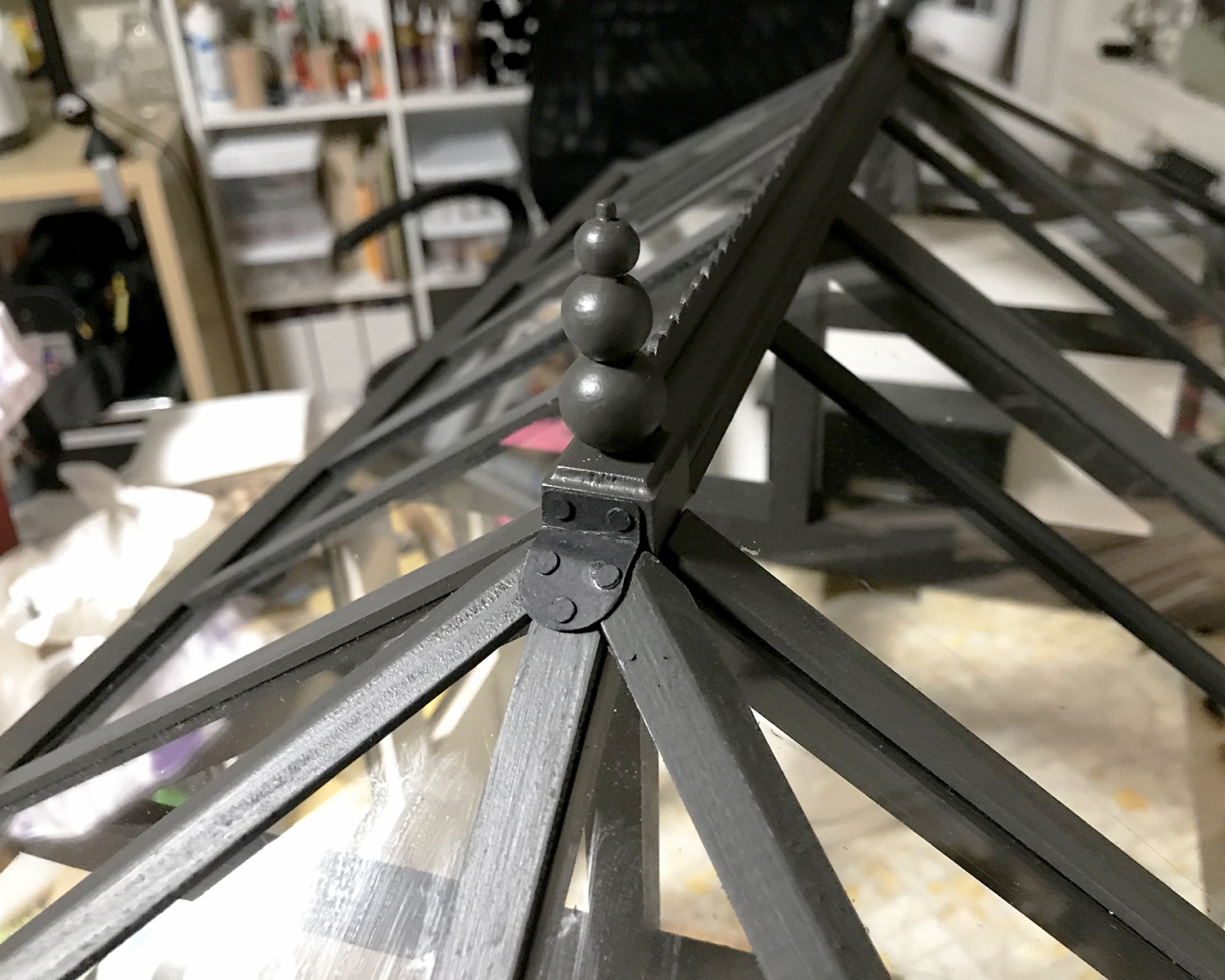 I indulged the rare decorative impulse to design pier piling hardware that echoes the Conservatory finials.