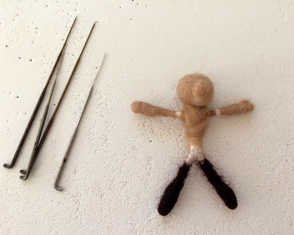 Of course I had to see what this was about. I had a bunch of wool roving, chenille stems and felting needles on hand from other (abandoned) attempts — I wasn’t instantly as good as Victor Dubrovsky, for instance — and Jessica’s gnomes looked doable-enough.