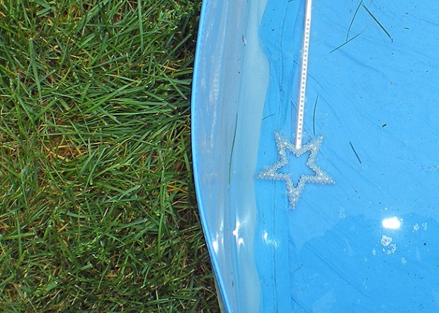 So of course, I didn’t take any photos during the party. I did wander around this morning a bit, picking up dead balloons and bottle caps, looking for a picture that could say it all. The magic wand in the kiddy pool comes the closest.