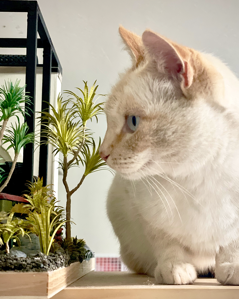 A: They’re 2 years old now and individuated. Meaning orange boy Tater is goofy, food-loving, easy going, and sister Maxine upholds every crazy thing you’ve ever heard about torties. And she parkours.