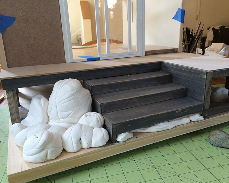 This is 8 ounces (226 g) worth of boulders and rocks — enough to populate the left side of the build. (You can also see my second-favorite multipurpose modeling tool: a silicone wine stopper.) I’ll let these guys dry for a day, then paint a first coat with the same taupe wash. I want to do the additional glazing and salt crystal sprinkling to all of the rock foundation at the same time. If all goes well this week, I’ll see time to continue my elemental play.