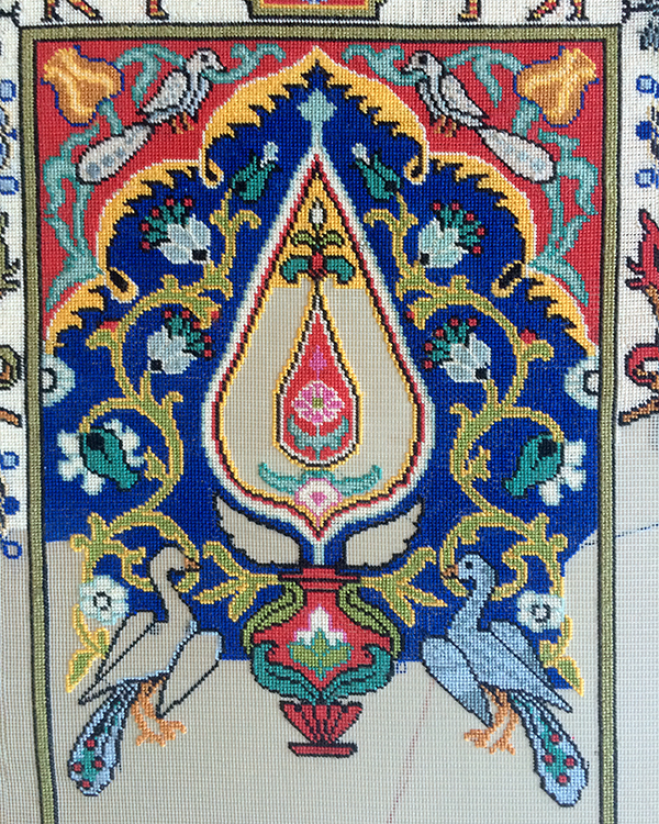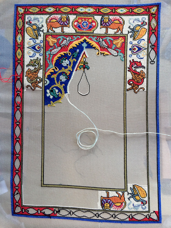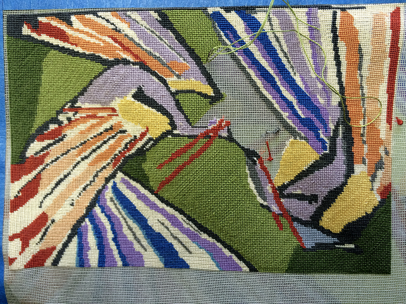 It’s been hibernating in an old soft cotton pillowcase for like a year. I love this thing, but stitching it requires a lot of concentration. But as John From Cinncinati suggests, I need to get back in the game. My ideal project right now is something I can fit in between work, and not have to read or follow a chart. While still deriving all the benefits miniature needlepoint stitching brings me.
