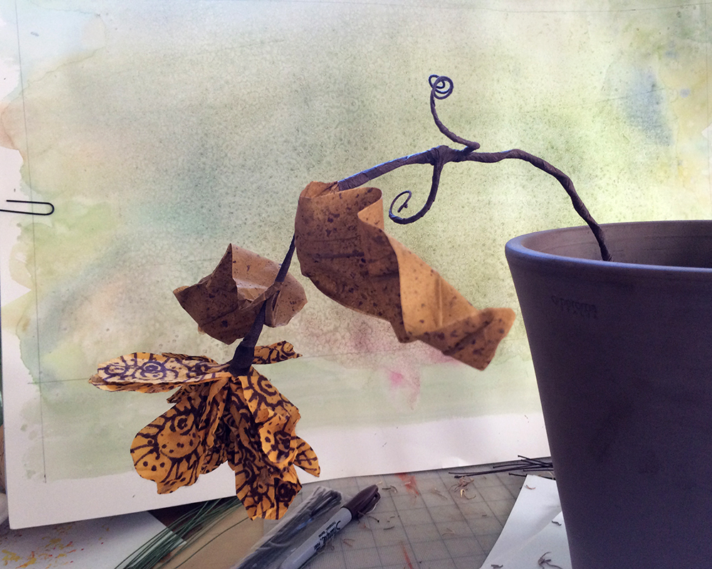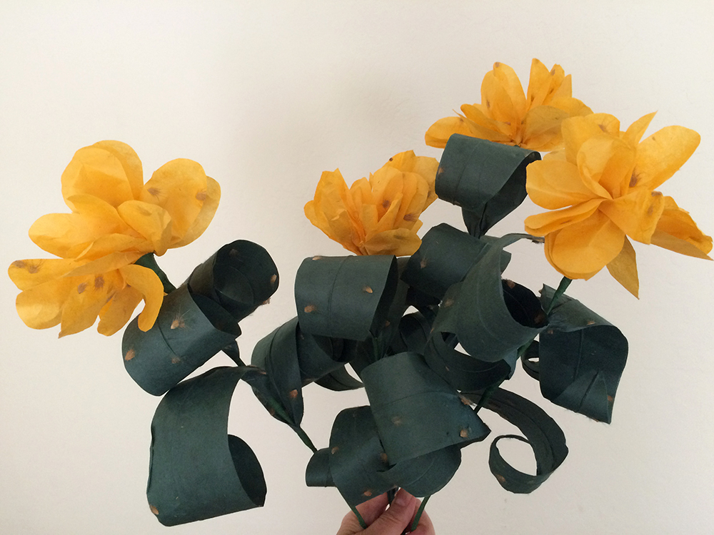 The flowers are made from the same kind of rice paper as the leaves. Like I said, they look like they are succumbing to something dire.
