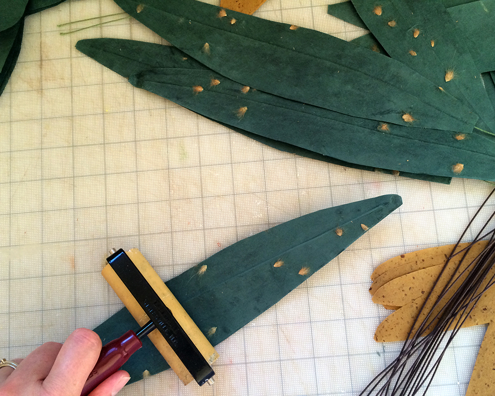 I made the flowers and leaves from various papers I had on hand, 18 and 22 gauge stem wire and florist tape. Working in macro takes up way more room and materials!
