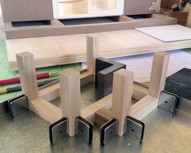 While that was drying, I measured for placement and glued the main structure posts to the foundation.