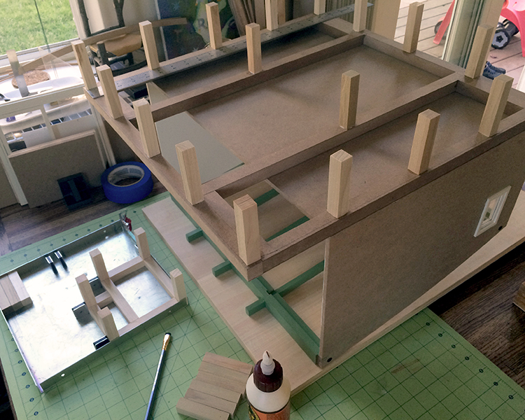 Here’s the kit deck and my illustration board extension subfloor. I’m glad it’s still March and the contest deadline is not ’til December 16.